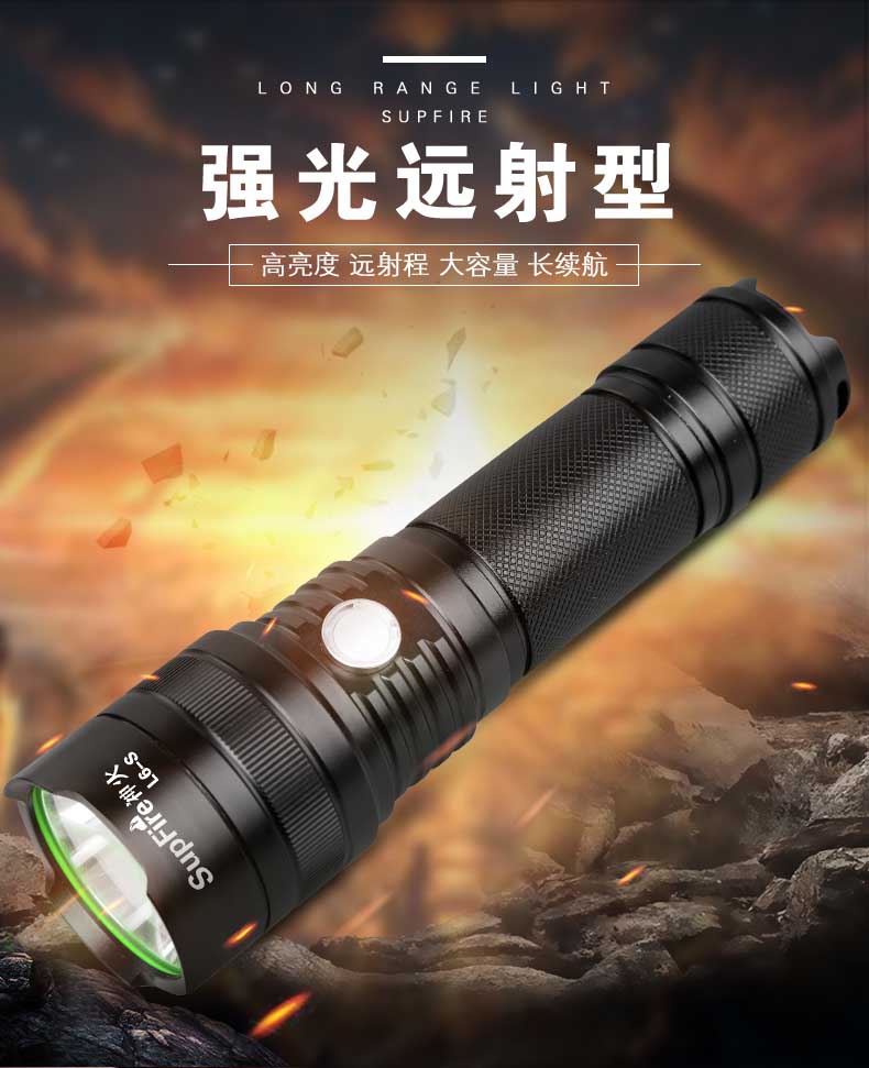 SupFire神火L6-S强光手电筒26650充电LED户外灯L2远射王新品